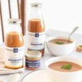 Eau, poissons 35%, concentré de tomates, oignons, carottes, poireaux, huile de tournesol, sel, épaississants : gomme xanthane et guar, ail, poivre, paprika et piment.