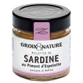 Sardine (62%) **, crème fraiche, eau, huile d'olive, farine de blé, échalotes, protéines de lait, sel de Guérande, poivre, piment d'espelette ( 0,1 %), poivre.